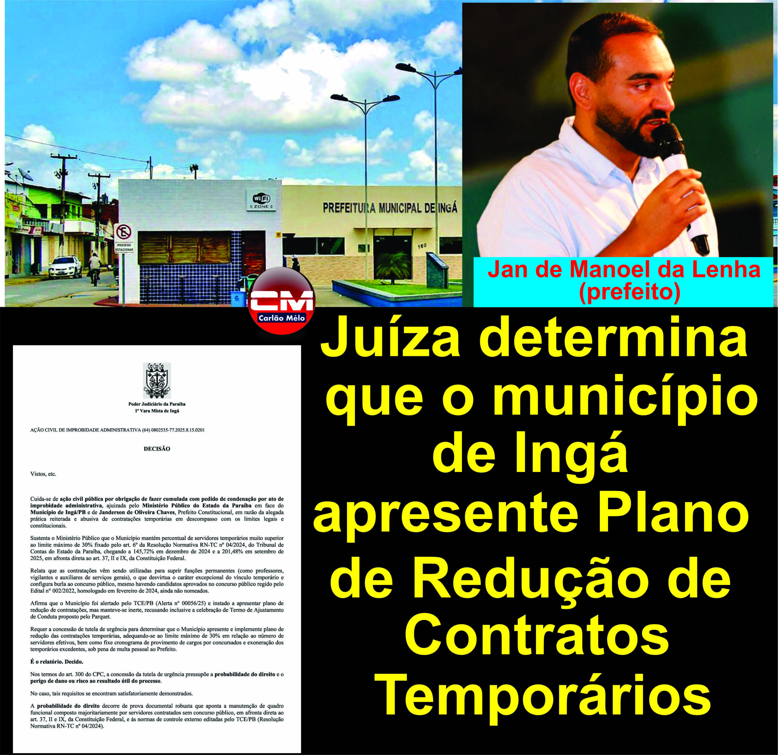 Acatando uma Ação Civil Pública por Improbidade Administrativa, movida pelo Ministério Público do município de Ingá – PB sob o número 0802535-77.2025.8.15.0201.