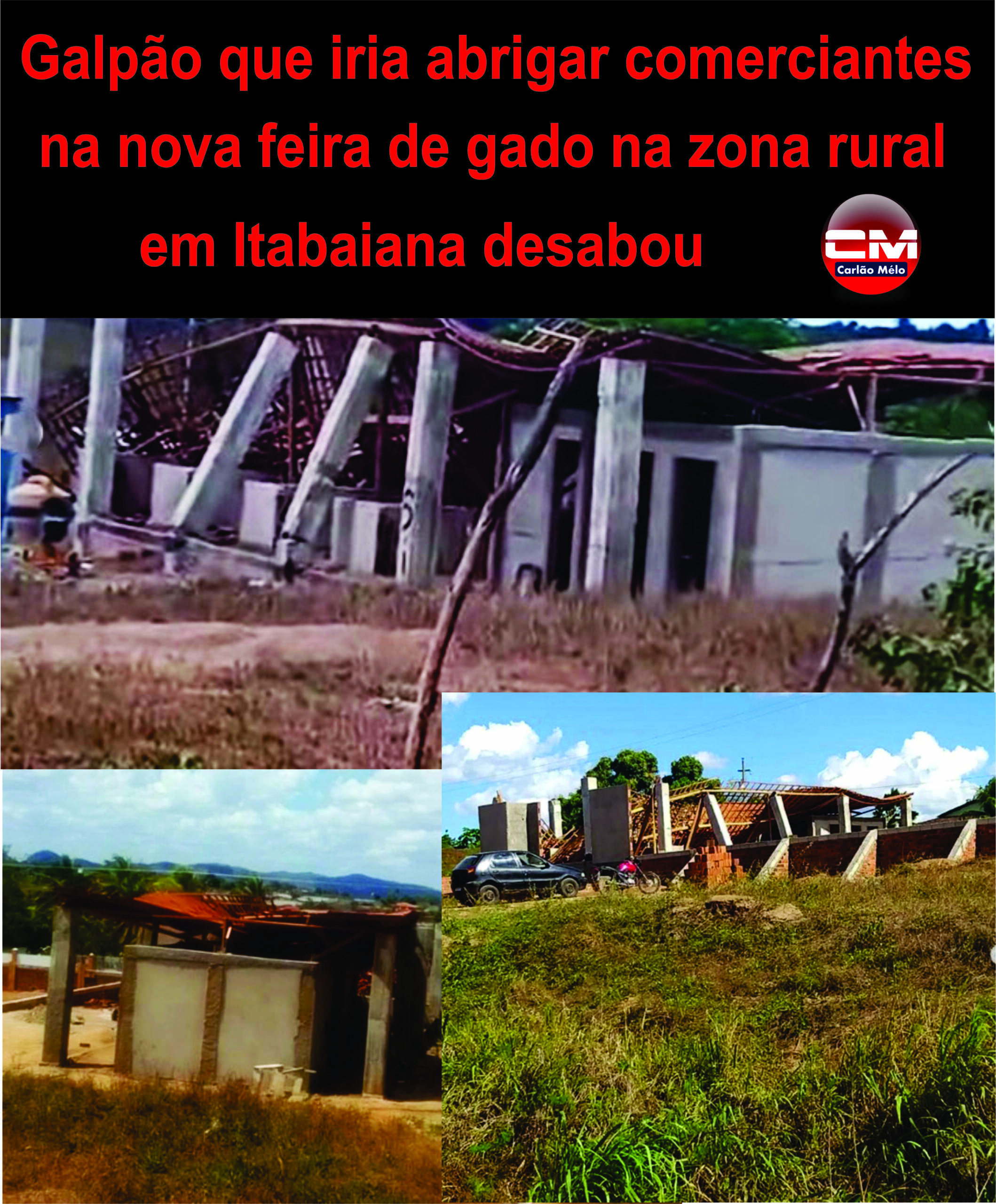 Galpão que iria abrigar comerciante na nova Feira de Gado na zona rural de Itabaiana desabou