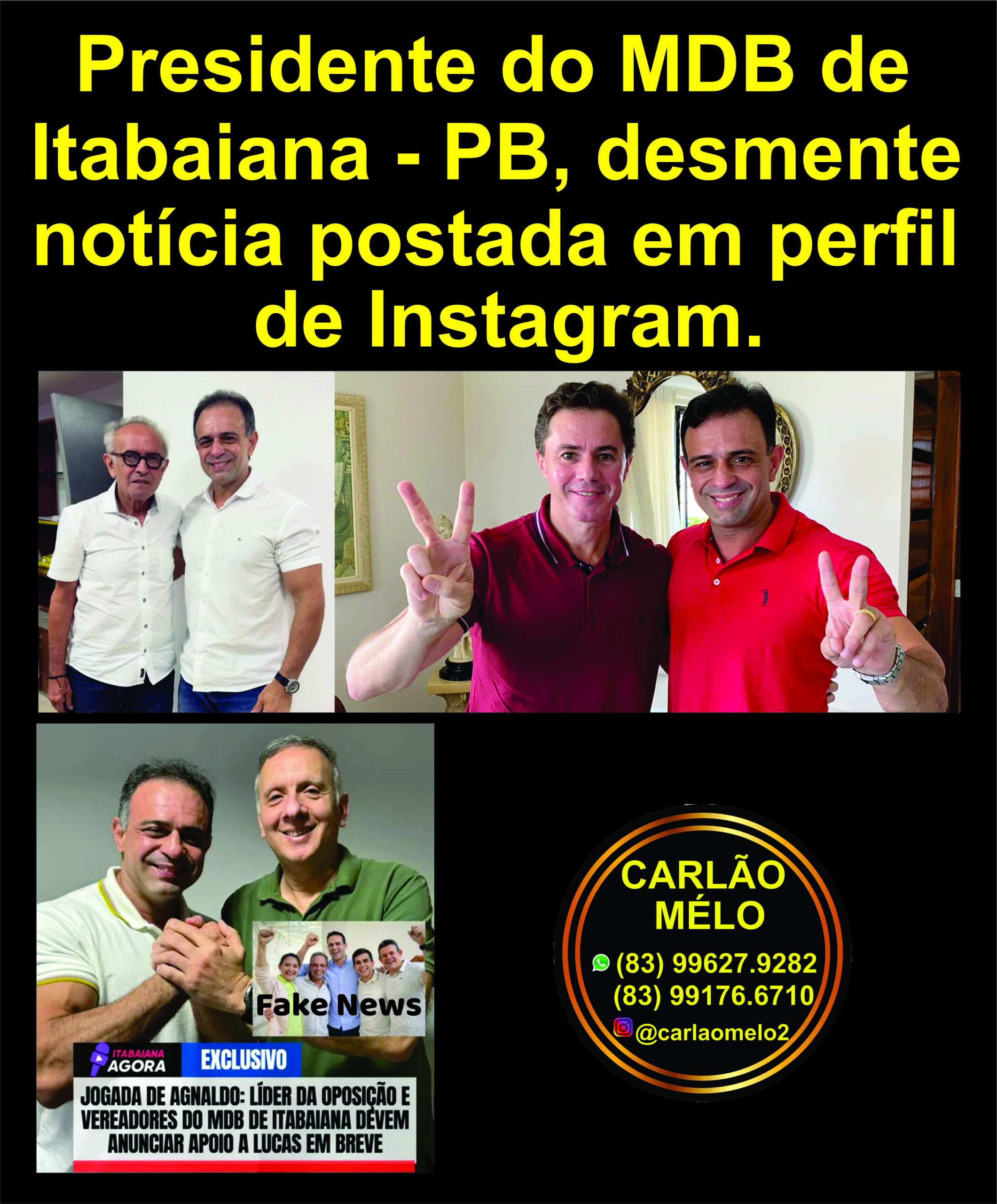 Presidente do diretório do MDB de Itabaiana, desmente notícia veiculada em perfil de Instagram em Itabaiana