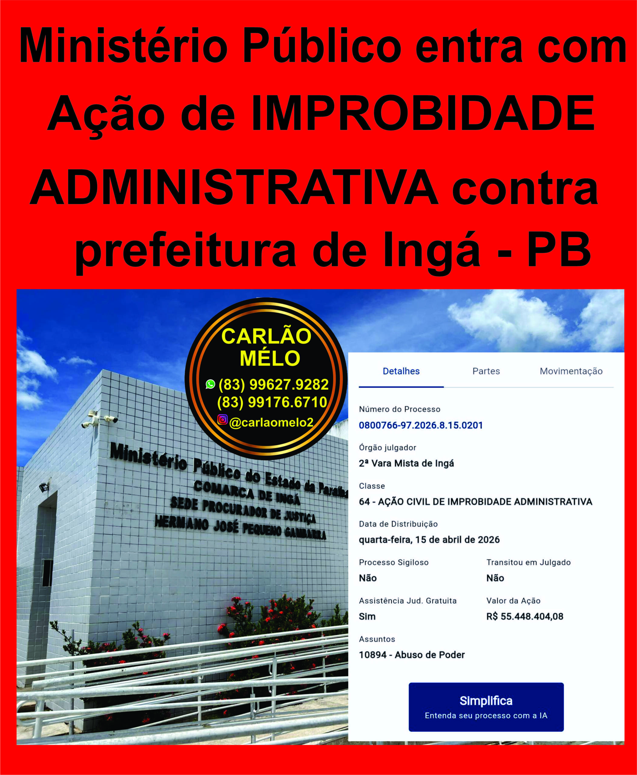 O Promotor de Justiça Sávio Damasceno da 2ª Promotoria de Justiça do município de Ingá – PB, moveu uma Ação Civil Pública